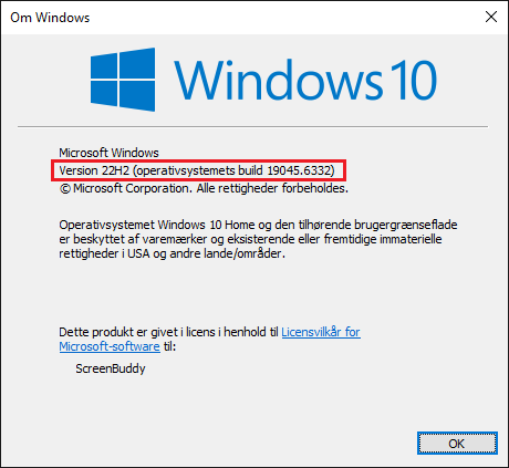 - Indtast kommandoen "winver", og tryk Enter.