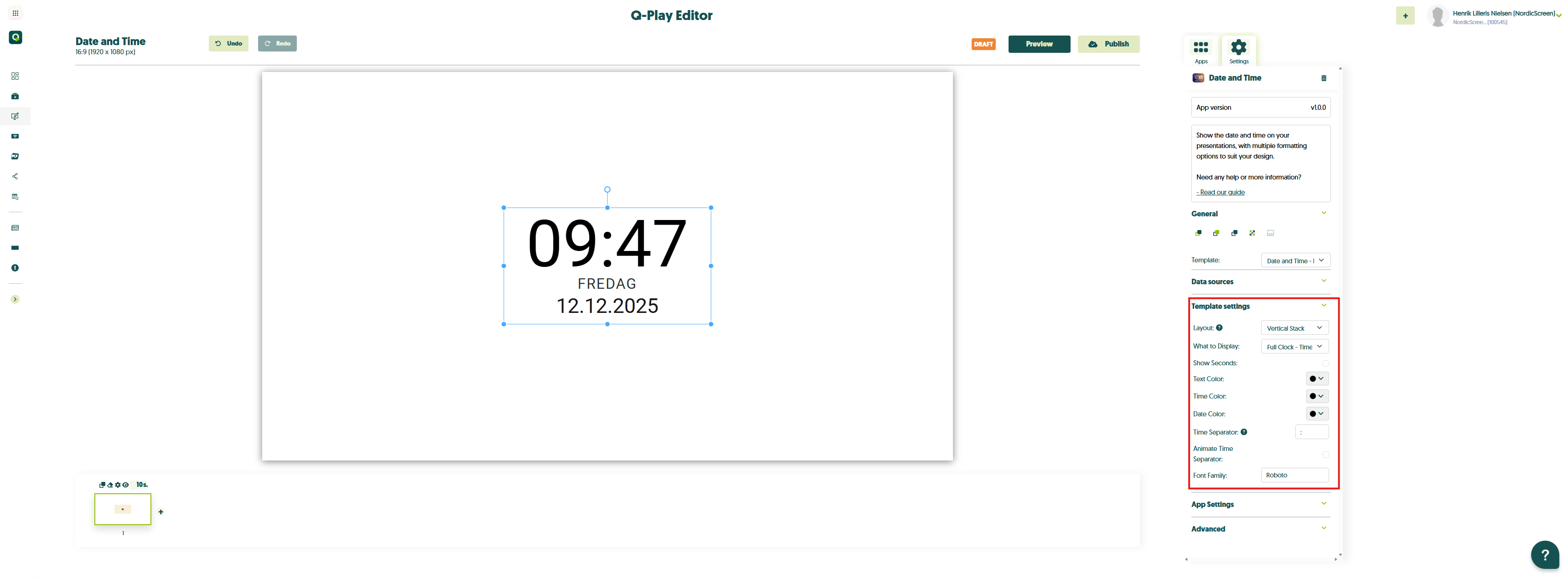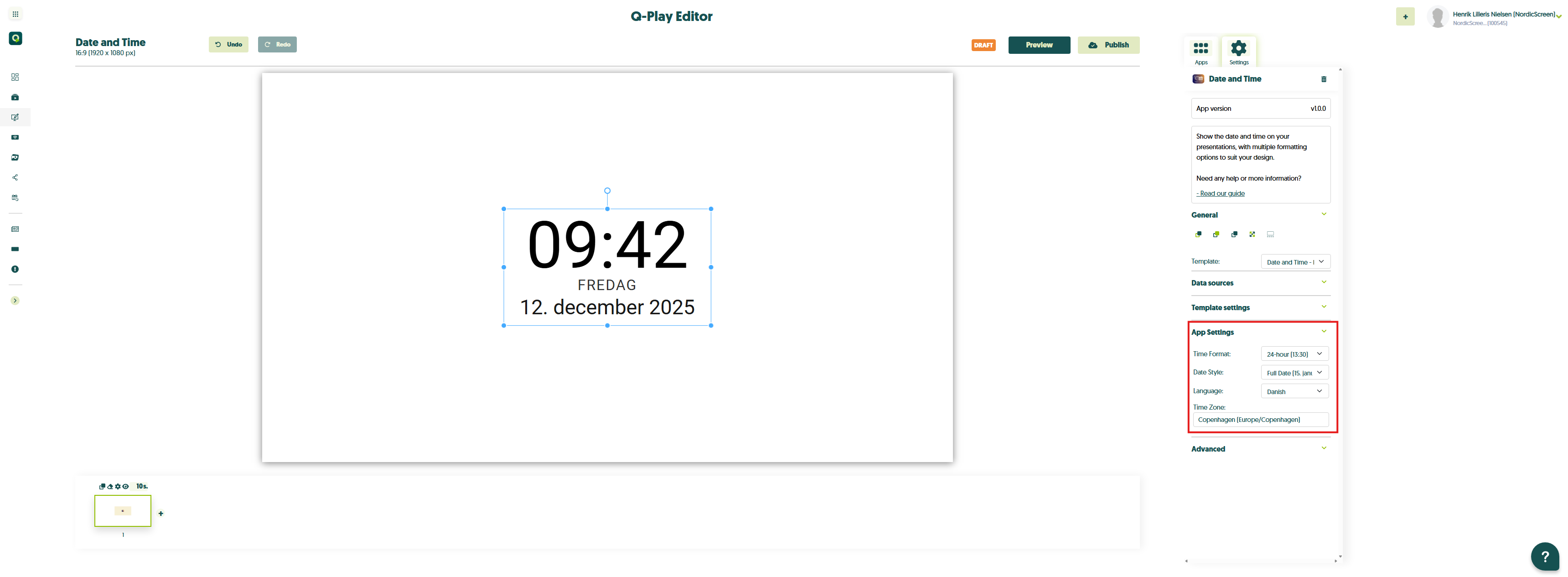 - Du har nu appen ‘Dato og Tid’ i dit design og kan begynde at tilpasse den, som du ønsker. Appen åbner automatisk i ‘App-indstillinger’.