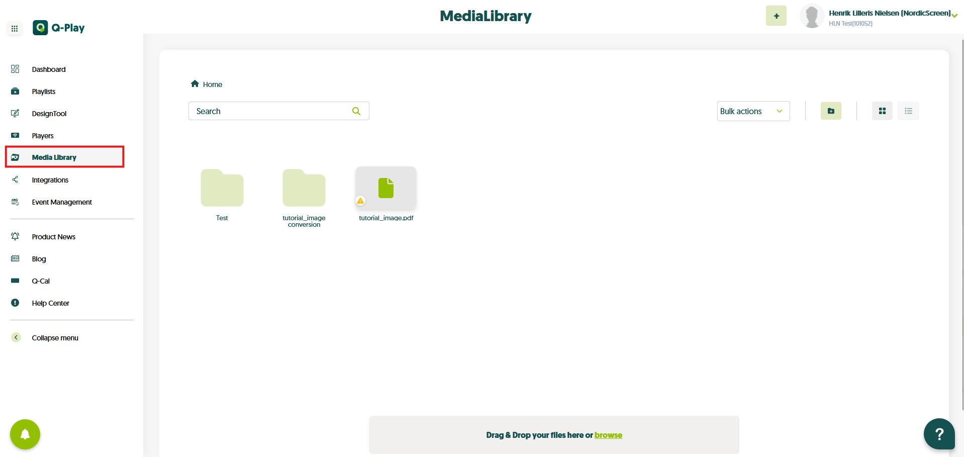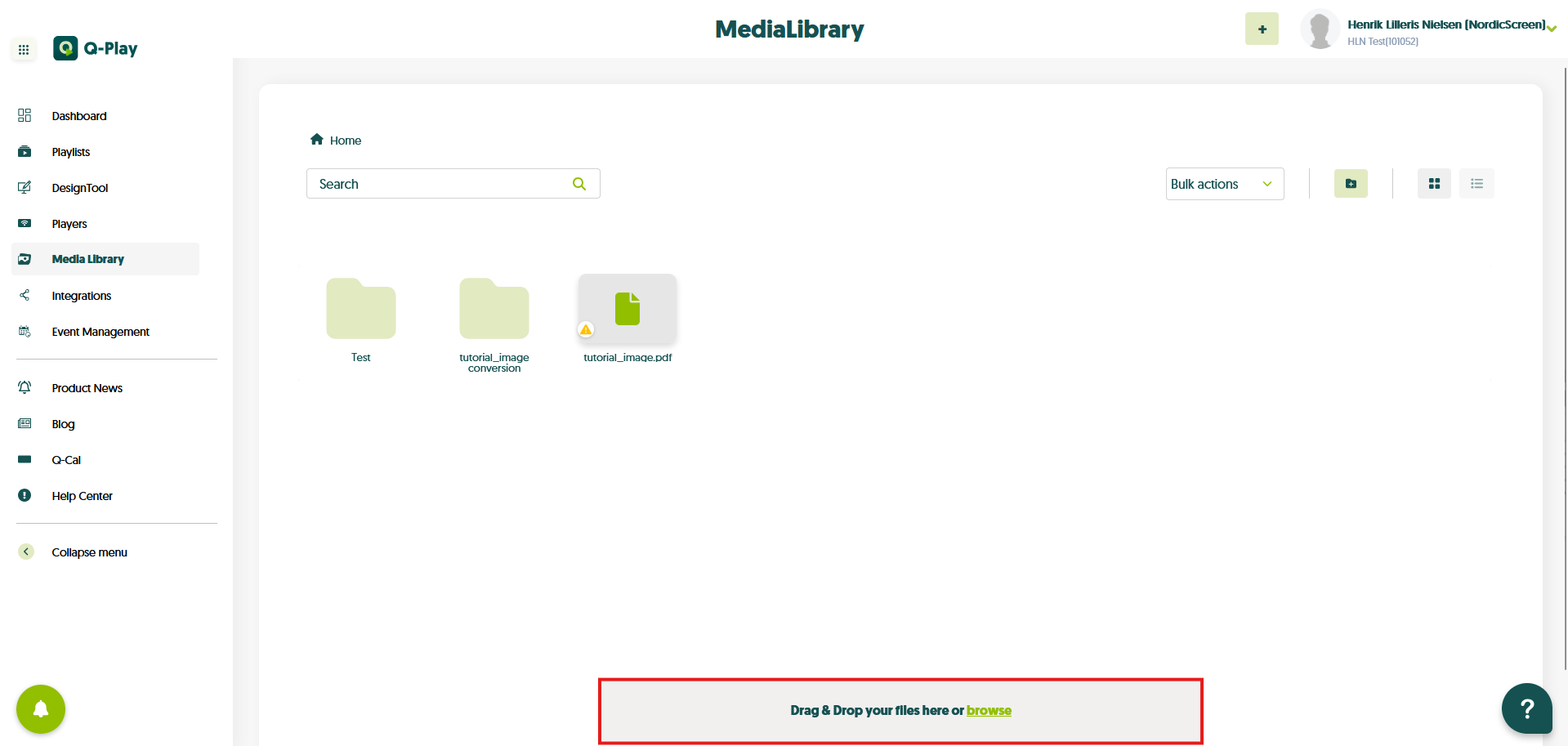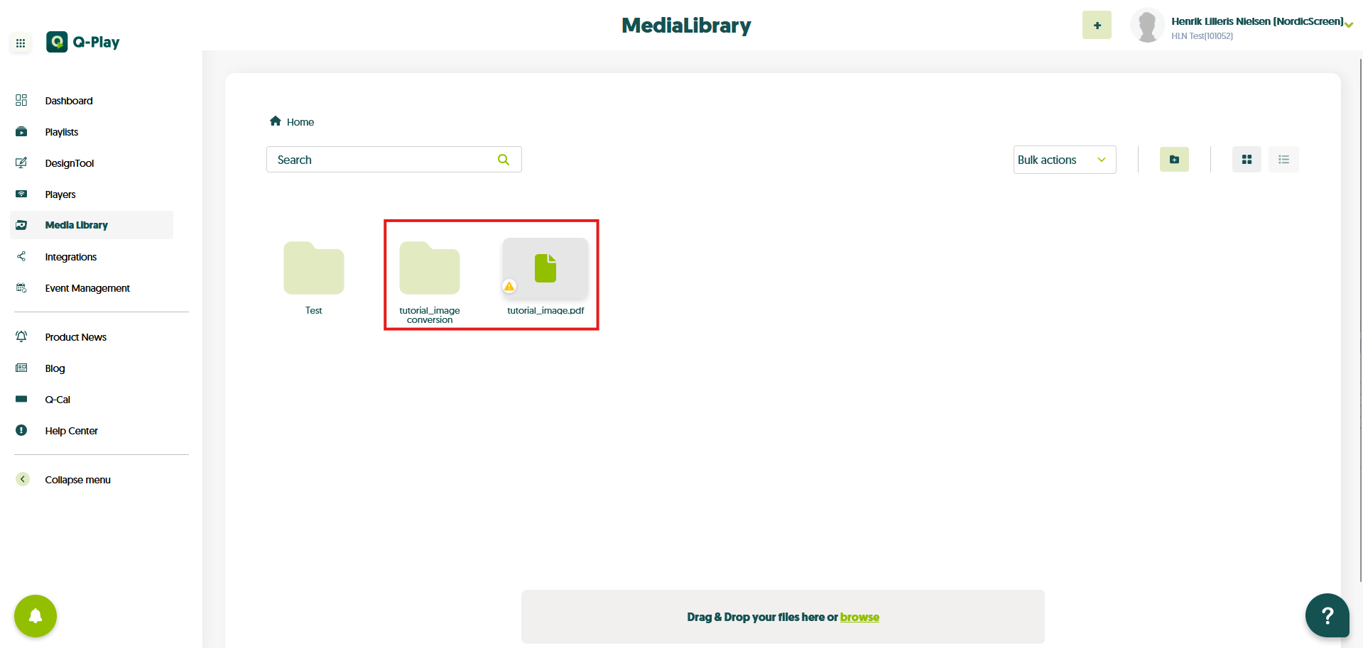 Når din PDF er uploadet, vil Q-Play automatisk oprette en ny mappe og konvertere PDF-siderne til billeder, så de kan bruges i din præsentation.