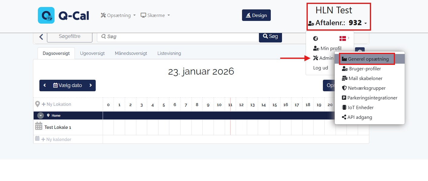 - Gå til Generelle indstillinger: Tryk på brugerprofil > Adminindstillinger > Generelle indstillinger.