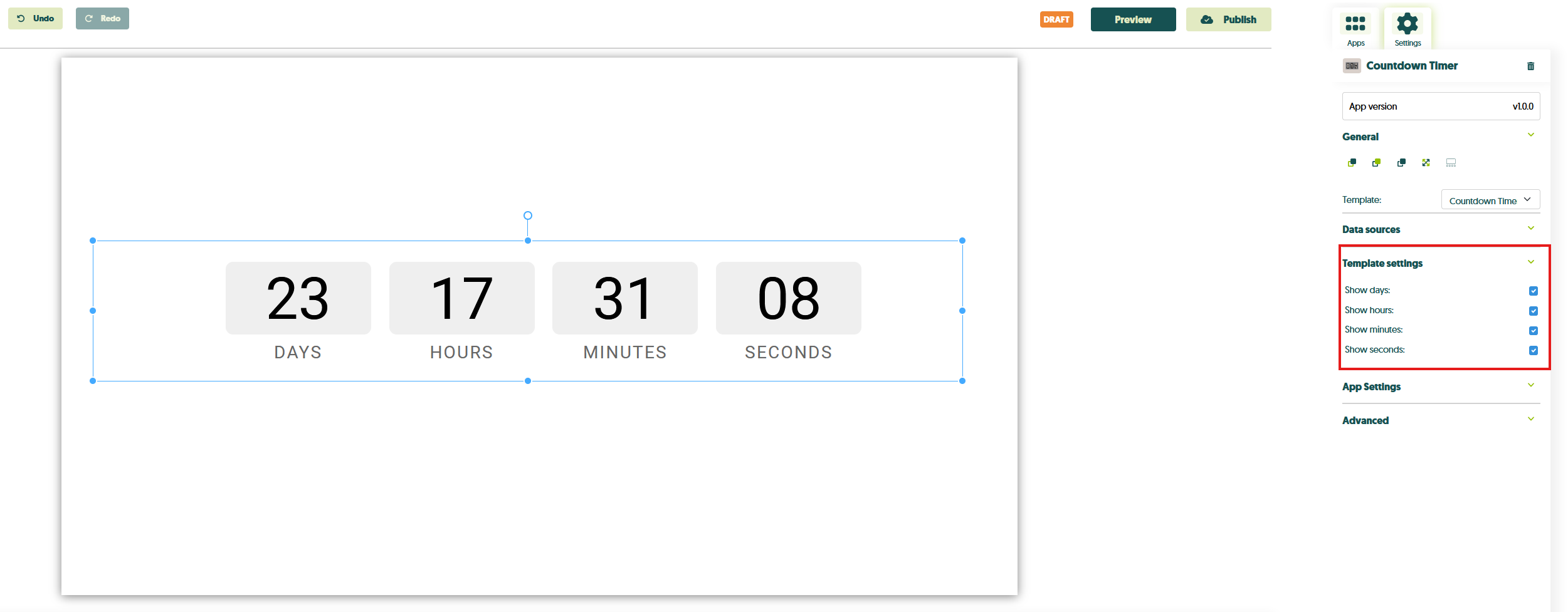 - Start by inserting the Countdown Timer app, either in a new design or an existing one.
