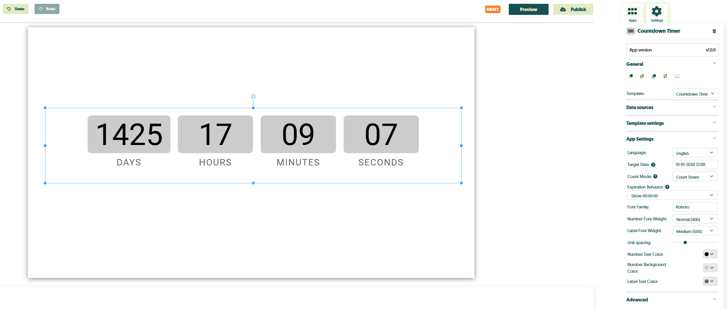 - Your timer is now set up and ready for either styling, or publishing if you are content with how it looks by default.