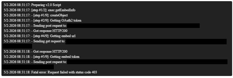If there is an ID, and the error is coming in later, make sure that the workspace and report ID is correct, also make sure that the report is in a shared workspace, and not your own private workspace.