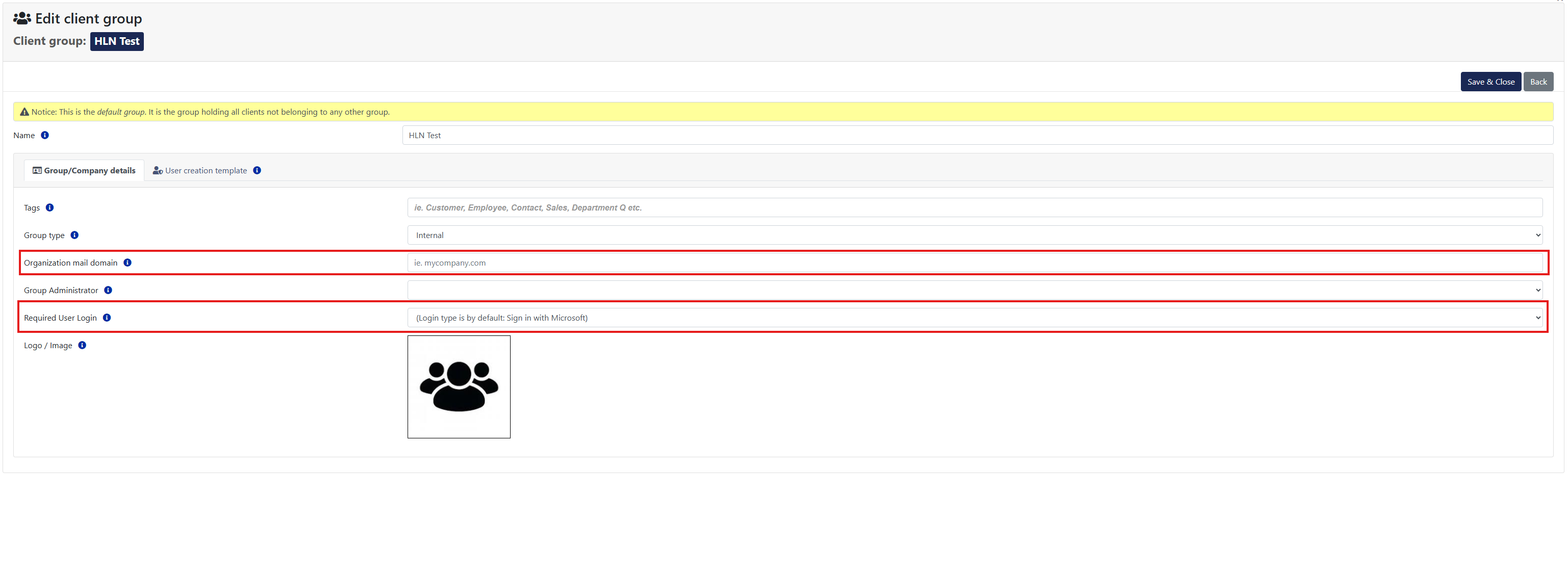 - You can then set up the SSO login on a whole group. To set up a group, press on the group name, a new pop-up will now open.